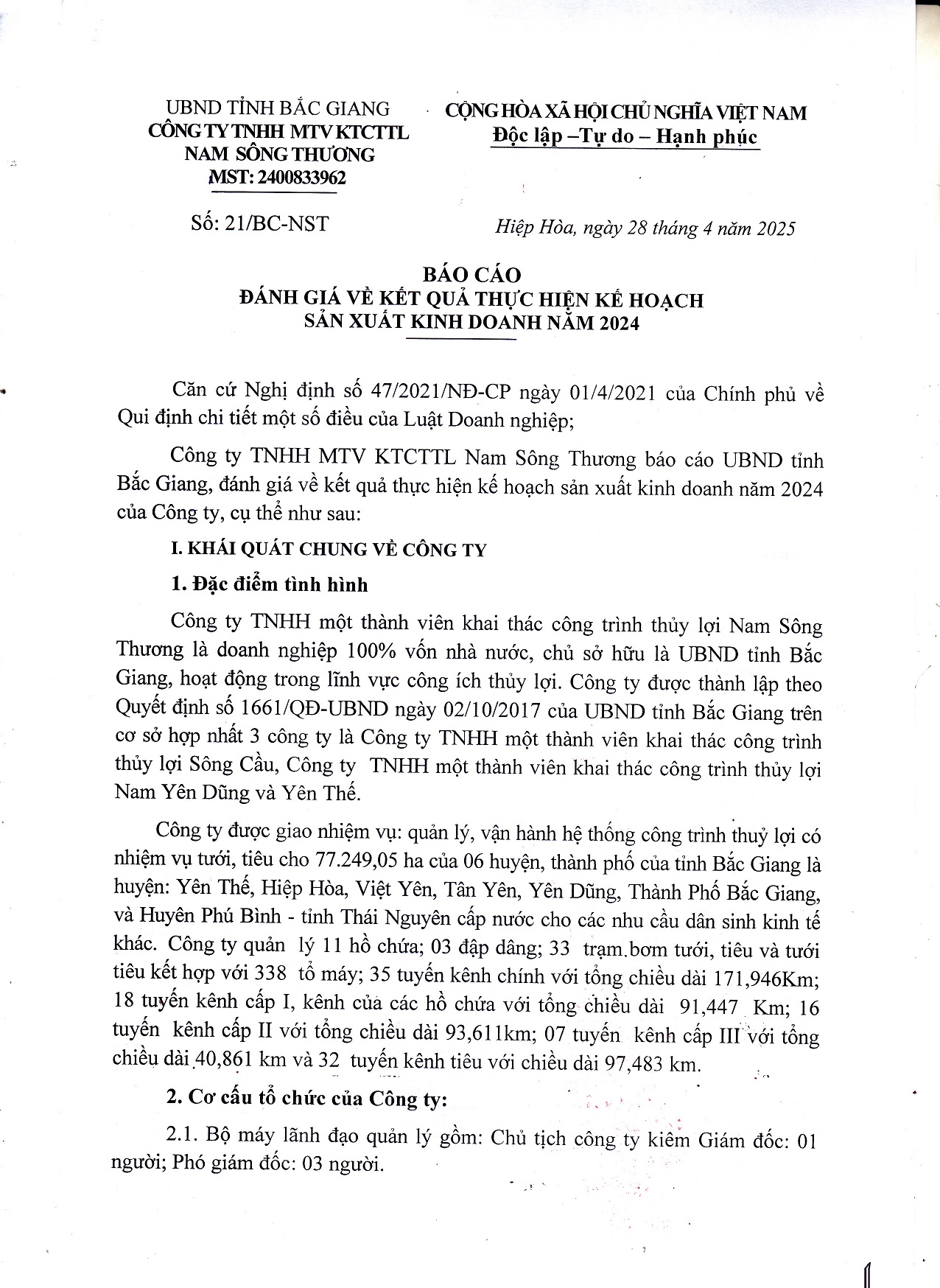BC 21 - Đánh giá về kết quả thwucj hiện kế hoạch SX KD năm 2024