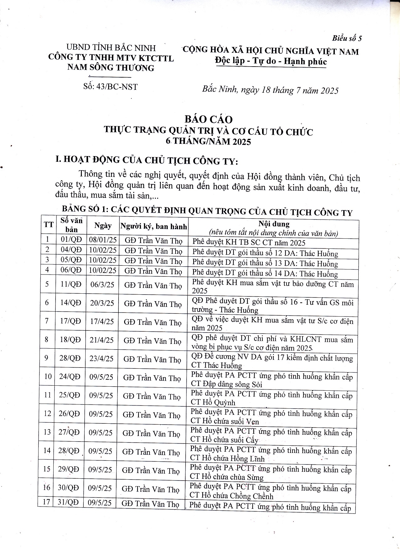 BC thực trạng quản trị và cơ cấu tổ chức 6 tháng đầu năm 2025