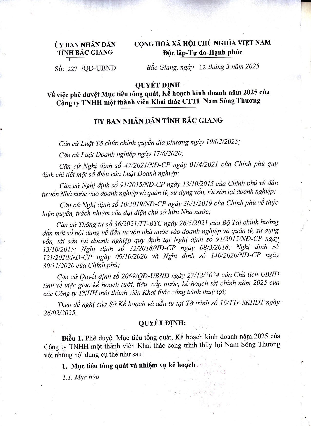QĐ 227 - Về việc phê duyệt Mục tiêu tổng quát, Kế hoạch kinh doanh năm 2025