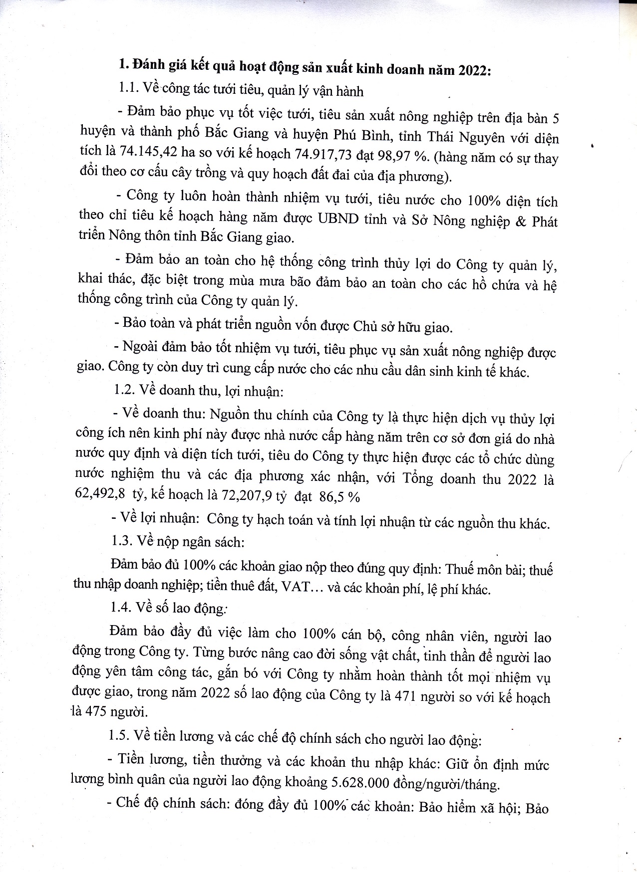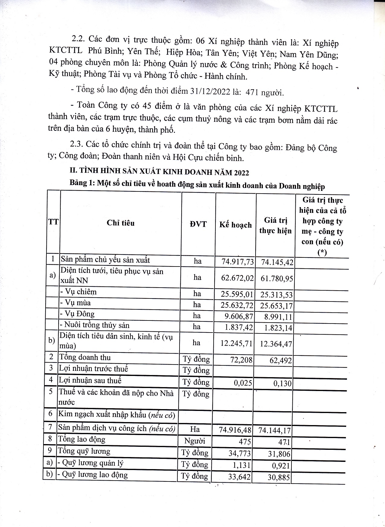 Bao cao danh gia ket qua thuc hien ke hoach san xuat kinh doanh nam 2022