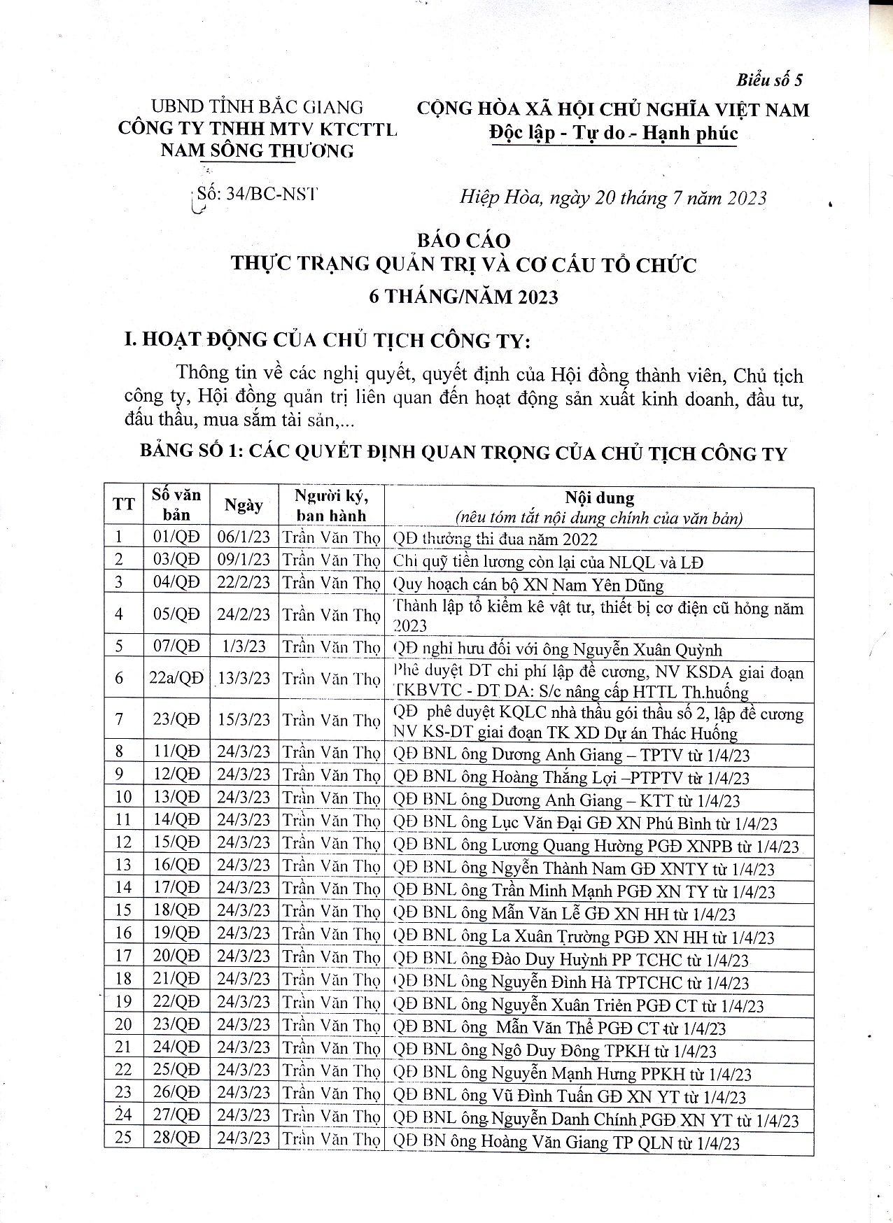 Bao cao tinh trang quan tri va co cau to chuc 6 thang nam 2023